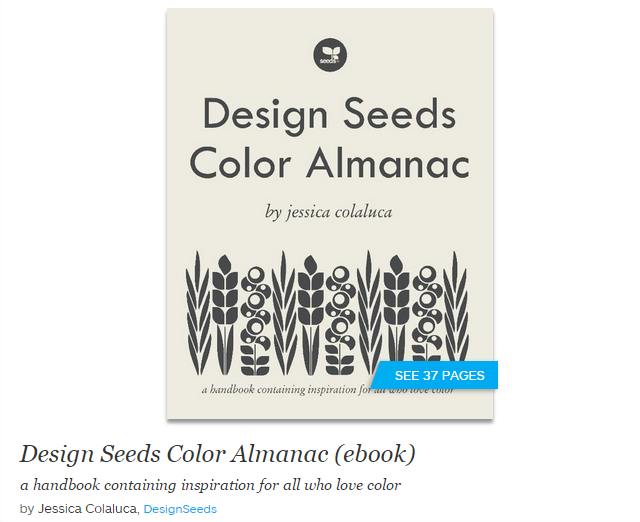 Jessica將他這些圖片與配色搭配文字集結成冊,成為一本讓愛好色彩的人可以方便使用的電子書「Design Seeds顏色年鑑」,這本電子書售價9.99元美金。由此可見,先以開放授權分享自己的點子讓更多人獲得啟發,再提供收費的加值服務讓非常有興趣的人可以珍藏,或許是己利利人的雙贏之道。
