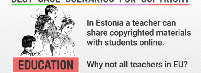 在愛沙尼亞,教師可以和學生線上分享受著作權保護的教育素材,為什麼在歐洲的其他教師們不能都這樣做呢? (The graphic design has been created by Manufactura Independente and is available under a CC0 license.)