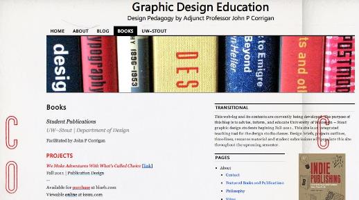 平面設計教程(Graphic Design Education)是John P Corrigan教授為威斯康欣大學University of Wisconsin平面設計學生在二零一一年所架設的線上教學網站。本網的整合式教學資源包含設計簡介、素材、學生實驗作品分享區等項目,目的是為了平面設計方面的教學、資訊交流和意見指導。身兼平面藝術家、印刷排版專家、設計師、策展人和作家等多重身份的John P Corrigan,多年來嘗試用不同的媒介和管道來拓展設計的可能性,並以視覺化的方法傳達他的設計經驗和想法,而身為策展人的角色,也幫助他收集來自個人、業界、機關組織等來源的作品,並以作家和觀察者的敏銳度去解析各種的設計作品。
